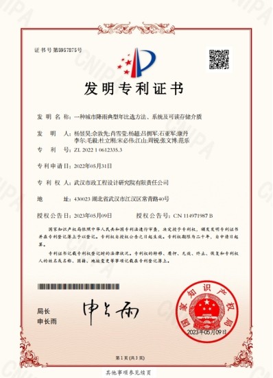 最終,項(xiàng)目組梳理了降雨典型年比選的方法,并申報(bào)獲批了國(guó)家發(fā)明專(zhuān)利。