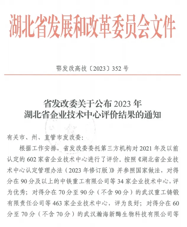 完成湖北省發(fā)改委組織的省企業(yè)技術(shù)中心三年評價并獲評“良好”