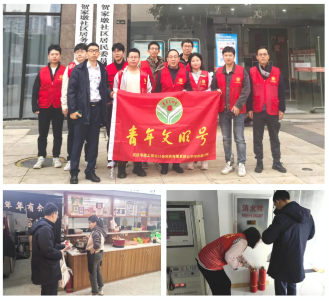 在集中學習實踐活動后,綜合院青年員工又主動到賀家墩社區(qū)開展消防宣傳志愿服務活動。在社區(qū)領導下,宣傳了老舊電器電路斷路、電動車違規(guī)充電、充電器、燃氣灶等風險隱患,滅火器的使用和火災逃生等知識,檢查了消防設施,排查了安全隱患。