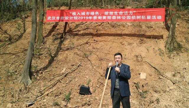 蔡輝為活動致辭,他肯定了此次植樹拓展活動的重要意義,希望大家在工作生活之余不要忘記承擔社會責任,并勉勵大家要在公司轉型發(fā)展時期展現(xiàn)出更加飽滿和積極向上的精神面貌。隨后,志愿者們拿起鋤頭、鐵鍬、水桶,在工作人員的指導下挖坑、植樹、培土、澆水、固定,將一棵棵樹苗植入土里。大家熱情高漲,你挖我栽,互相配合,30余棵樹苗已經栽種完畢。大家合力豎立起“武漢市政工程設計院愛綠護綠植樹林”標識牌,并與之合影留念。