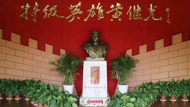 ??? 下午15時(shí)許,全體黨員在工作人員的指引下,參觀了黃繼光英雄連營(yíng)地及黃繼光班宿舍。黃繼光英雄連榮譽(yù)室莊嚴(yán)肅穆,“特級(jí)英雄黃繼光”的金色大字熠熠生輝,訴說(shuō)著英雄的無(wú)上榮光。全體黨員在黃繼光雕塑前駐足凝視,向英雄敬獻(xiàn)花籃,并集體鞠躬致哀。圣潔芬芳的白玫瑰、輕盈綻放的滿天星,寄托著對(duì)英雄的深切緬懷和崇高敬意。隨后,全體黨員在工作人員的解說(shuō)指引下,緩步繞行,默默地瞻仰著黃繼光的生平事跡及黃繼光英雄連的榮譽(yù)展覽,心靈、思想受到極大觸動(dòng)和震撼。