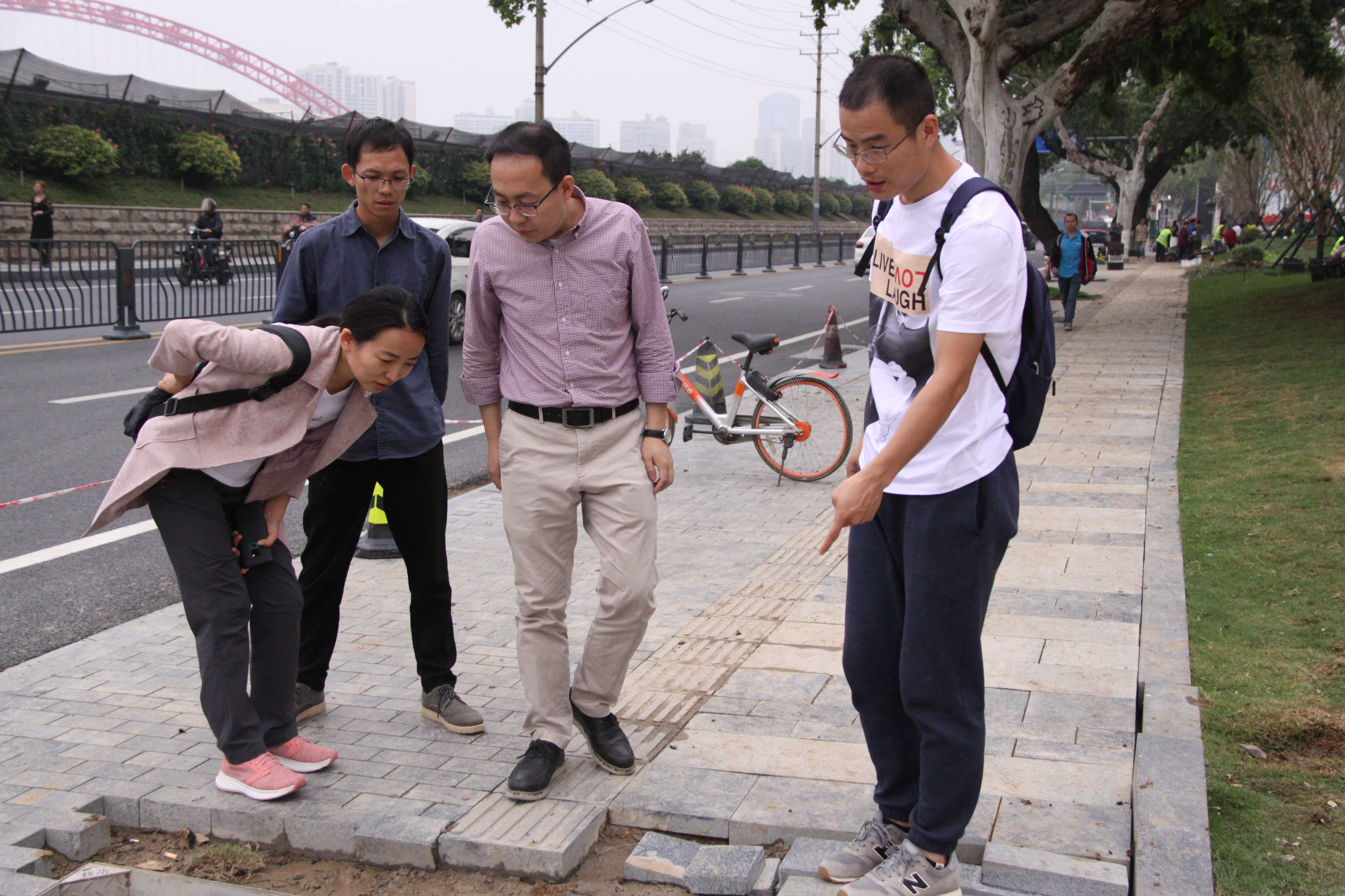 ??? 督查小組先后踏勘了東湖路、“長江主軸”左右岸大道、解放大道、鸚鵡大道等項目現(xiàn)場,聽取了項目負責人關(guān)于項目建設進度等相關(guān)情況的匯報,重點查看了人行道鋪裝、人性化設施、城市家具設施等精細化情況。