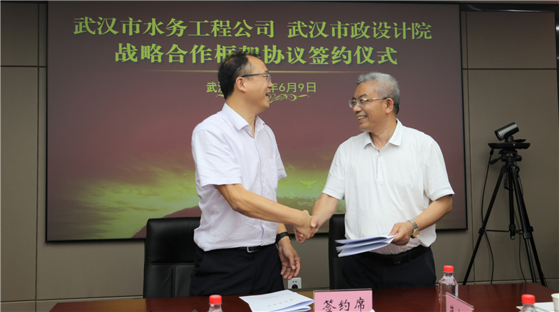 2020年6月9日下午,公司與武漢市水務(wù)建設(shè)工程有限公司簽訂戰(zhàn)略合作框架協(xié)議,雙方將依托各自優(yōu)勢資源,在城市水務(wù)建設(shè)、市政基礎(chǔ)設(shè)施建設(shè)等多領(lǐng)域展開深度合作。武漢市水務(wù)建設(shè)工程有限公司經(jīng)理程飛、黨委書記陳軍、副經(jīng)理宋萍森,公司董事長武興治、總經(jīng)理姚華、副總經(jīng)理周俊等出席了簽約儀式。
