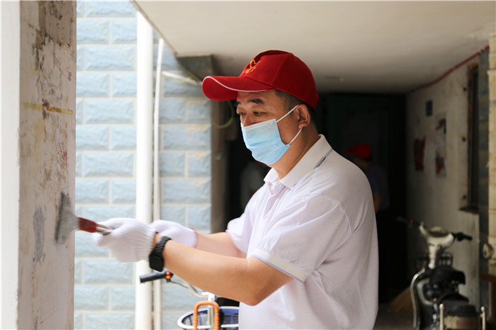 由于該小區(qū)系老舊小區(qū),樓棟內(nèi)沒有電梯,黨員們需要步行逐層進(jìn)行清理,加之暑熱未消,沒過一會他們的衣服就被汗水浸濕了,額頭上也掛滿了密密的汗珠。但看著煥然一新的房門和墻面,他們的心里也油然生出了滿滿的成就感。