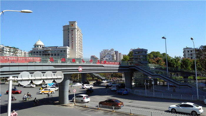 “同濟(jì)健康天橋”,被市民親切的稱為“英雄橋”。主橋橫跨交通繁忙的解放大道,北接同濟(jì)醫(yī)院門診主樓,南連同濟(jì)醫(yī)院生殖中心。天橋主梁全長55.2米,天橋兩端共設(shè)計4個出入口,安裝4部自動扶梯,并設(shè)置了1:2的梯道。從空中俯瞰,呈現(xiàn)一個“工”字。