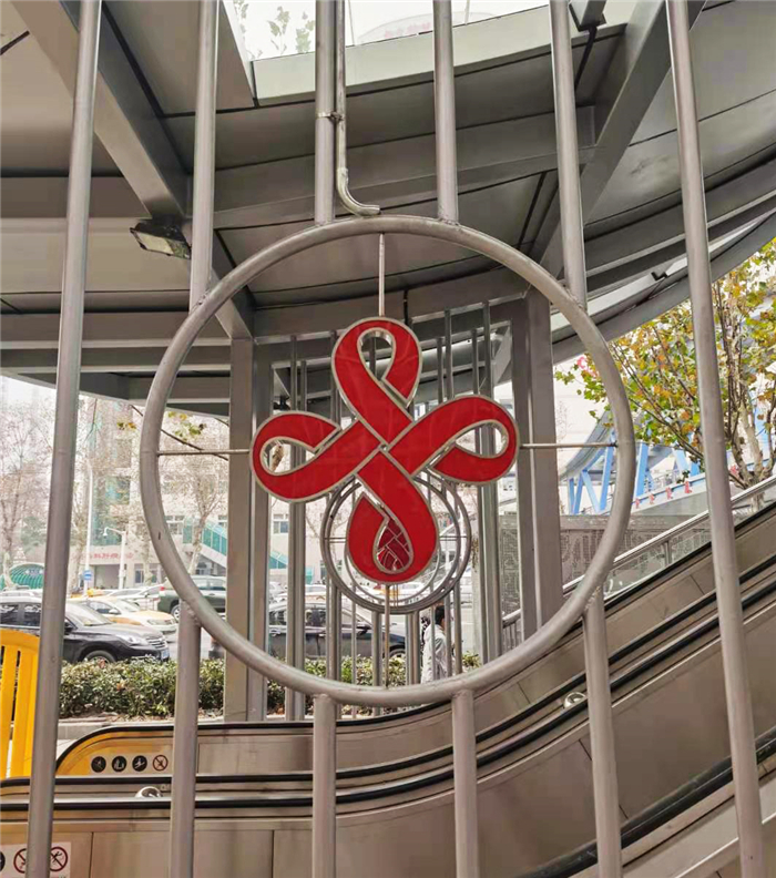 在天橋梯道及自動扶梯入口處、橋下休憩區(qū)設(shè)計醒目的紅色標(biāo)識,將中國結(jié)與紅十字融為一體,象征博愛、奉獻(xiàn)精神的白衣天使與武漢人民永結(jié)同心,中國結(jié)寓意著美好、吉祥、安康。