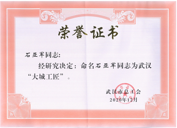 近日,一則喜訊從武漢市總工會傳來,在剛剛結(jié)束的第三屆武漢“大城工匠”選樹活動中,公司副總工程師、水環(huán)境研究院副院長石亞軍同志喜獲“大城工匠”稱號。