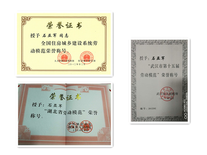 石亞軍同志先后榮獲“住房城鄉(xiāng)建設(shè)系統(tǒng)勞動模范”“湖北省勞動模范”“武漢市勞動模范”、武漢市“雙創(chuàng)”競賽活動“創(chuàng)新能手”、武漢市職工職業(yè)道德建設(shè)“雙十佳”先進(jìn)個人等榮譽(yù)稱號,并于2018年作為“新時代、新氣象、新作為”武漢市勞動模范先進(jìn)事跡報告團(tuán)成員在武漢市作巡回報告,這是對他甘于奉獻(xiàn)、愛崗敬業(yè)、守正創(chuàng)新精神的褒獎!