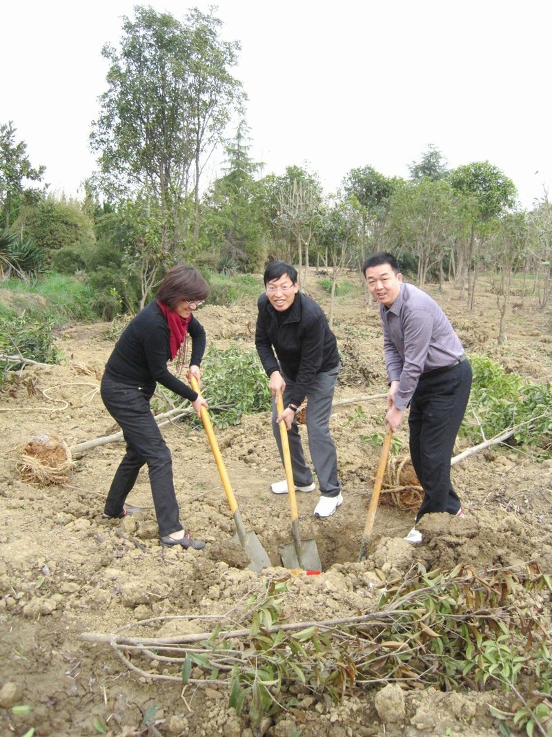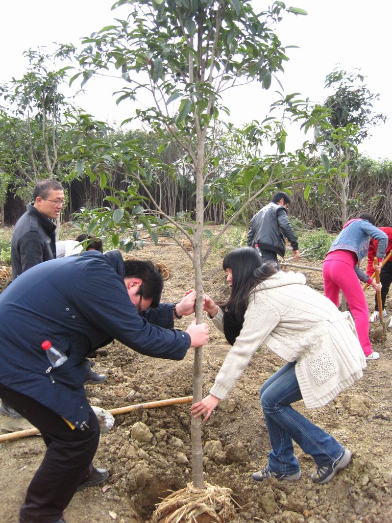 參觀結(jié)束后,員工們來到植樹基地,在工作人員的指導下開始植樹。蔡書記和趙副總經(jīng)理率先垂范,親手種下了幾株樹苗。領(lǐng)導帶頭,員工們自然也不甘人后,大家熱情高漲,你挖我栽,互相配合,不一會,50余棵樹苗已經(jīng)栽種完畢。大家親手制作了信息牌,寫上部門和自己的名字,并舉起相機,在自己的“勞動成果”前合影,見證這次有意義的植樹活動。