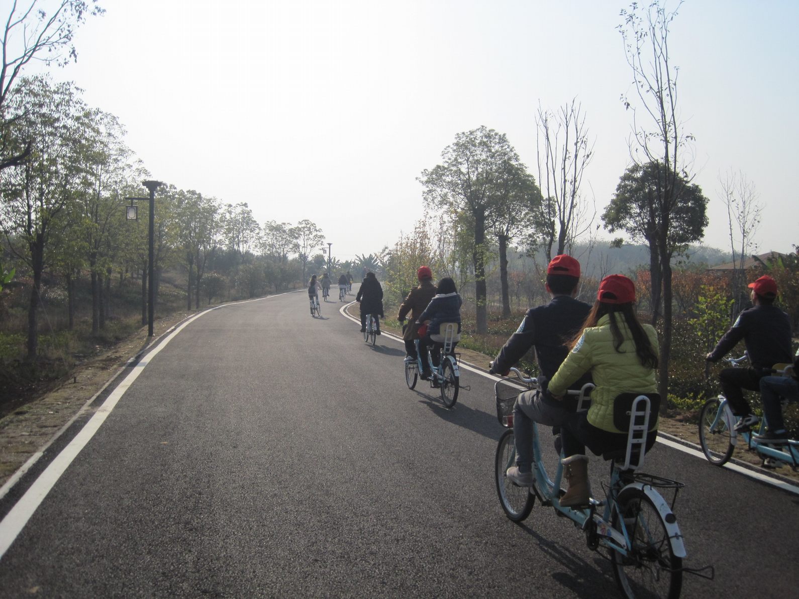 ??? 12月1日,青年員工一行20余人來(lái)到蔡甸區(qū)后官湖綠道,開(kāi)展了以“倡導(dǎo)低碳出行,享受綠色生活”為主題的“綠色騎行”活動(dòng)。青年員工們踏著自行車(chē),沿著剛剛建成開(kāi)放的后官湖綠道騎行,沿途被平靜優(yōu)雅的湖面環(huán)抱著,還經(jīng)過(guò)了果實(shí)累累的橘林,青翠茂盛的菜園。青年員工們陶醉在這片寧?kù)o而美好的綠色中,更加感受到環(huán)境保護(hù)的重要,他們沿途向游人宣傳綠色出行理念,對(duì)破壞環(huán)境的行為進(jìn)行制止。