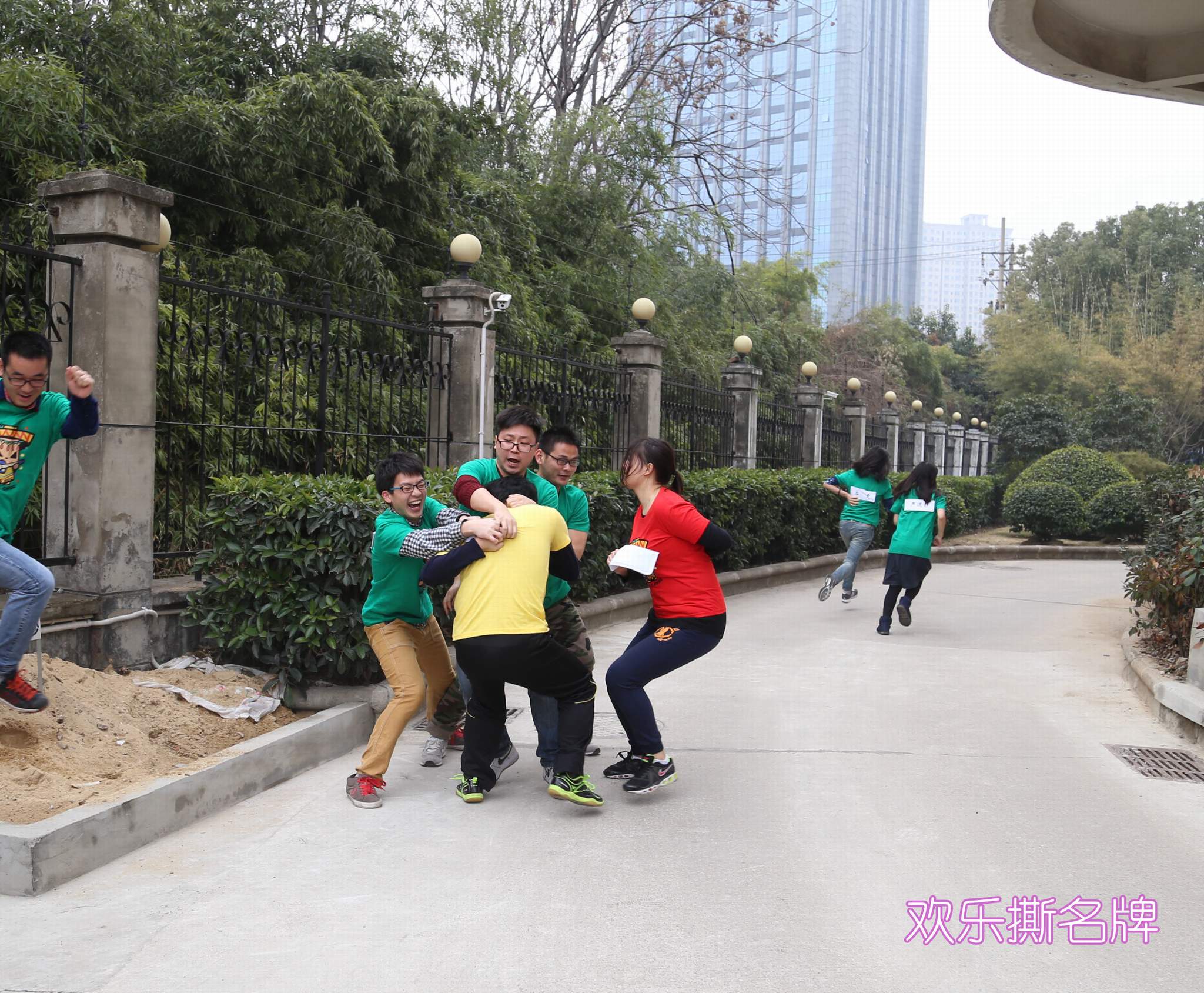 ??? 活動(dòng)的最后一個(gè)環(huán)節(jié),就是撕名牌。每名隊(duì)員背后貼有自己名字的名牌,三支隊(duì)伍互相撕下對(duì)方的名牌,被撕下名牌者即遭淘汰,每隊(duì)最終保存名牌人員最多者獲勝。此時(shí),綠、黃兩隊(duì)在前幾個(gè)環(huán)節(jié)中獲得的錦囊將發(fā)揮作用,包括“死亡筆記”(持有者寫(xiě)下名字的隊(duì)員直接出局)、“傷害反彈”(被撕掉名牌者與實(shí)施行為者同時(shí)出局)、“女神的寬恕”(女隊(duì)員指定任意一名出局的參賽者復(fù)活)、“傷害冬眠”(撕掉技能持有人的名牌者冬眠15分鐘,不能攻擊,只能防守)。