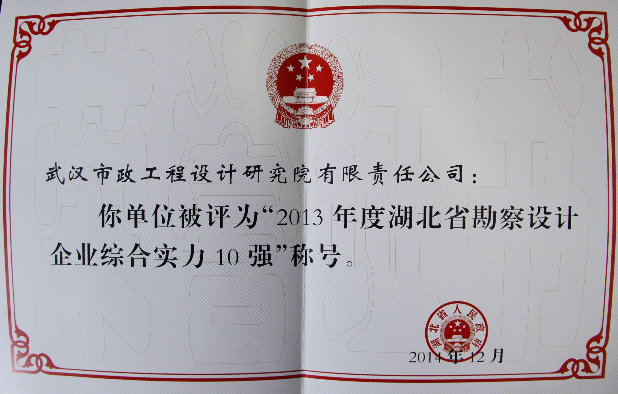 ??? 2月12日,湖北省住房城鄉(xiāng)建設工作會議暨黨風廉政建設工作會議在洪山禮堂召開,會議正式下發(fā)文件,對2013年度湖北省勘察設計企業(yè)綜合實力十強進行表彰,公司憑借近年來在行業(yè)中的突出表現而榜上有名。