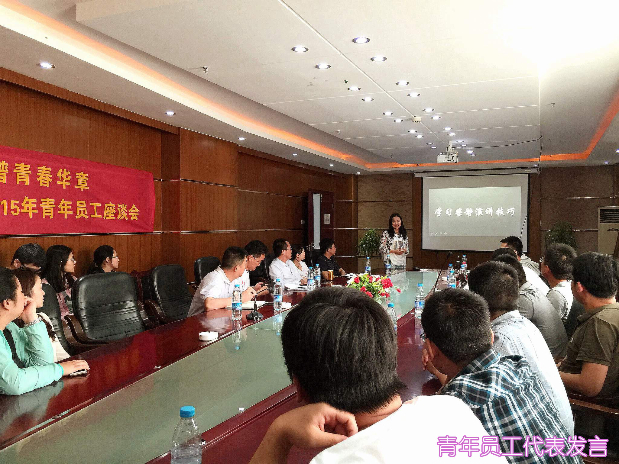 ??? 與以往的青年員工會議注重理想和信念教育不同,今年的座談會主要以青年員工個人魅力和自身素質(zhì)的塑造和提升為主題,青年員工就時下比較熱門的社會事件進(jìn)行觀摩和分析,并結(jié)合自身情況闡述個人觀點,交流心得體會。從柴靜的《穹頂之下》,大家學(xué)到了溝通時論據(jù)信息的準(zhǔn)備技巧;從馬云的香港演講,大家學(xué)到了在溝通交流中如何形象運用肢體語言;從汪涵的臨危救場,大家學(xué)到了面對突發(fā)事件的應(yīng)對技巧。