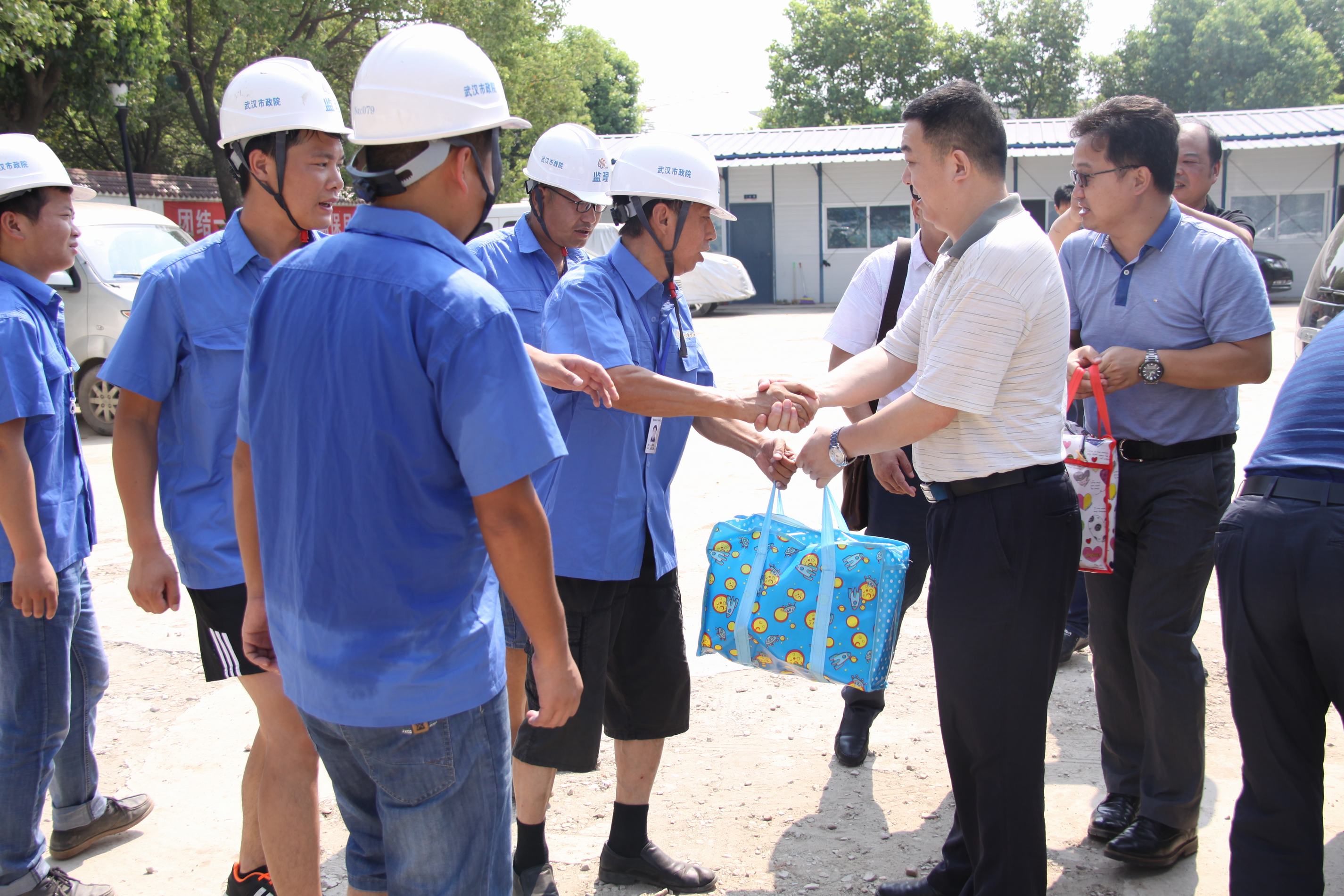 ??? 蔡輝書記一行先后來到城華路、漢陽海綿城市示范區(qū)、黃家湖污水處理廠等工地現(xiàn)場(chǎng),為堅(jiān)守在現(xiàn)場(chǎng)的員工們送上消暑慰問品。公司領(lǐng)導(dǎo)聽取了現(xiàn)場(chǎng)負(fù)責(zé)人的工作情況匯報(bào),詳細(xì)詢問了員工們的工作和生活情況,并叮囑他們注意高溫天氣下的工作安全。同時(shí)要求相關(guān)部門負(fù)責(zé)人合理安排工作時(shí)間,做好人員調(diào)配,制定防暑降溫工作預(yù)案,保證一線員工的身體健康。