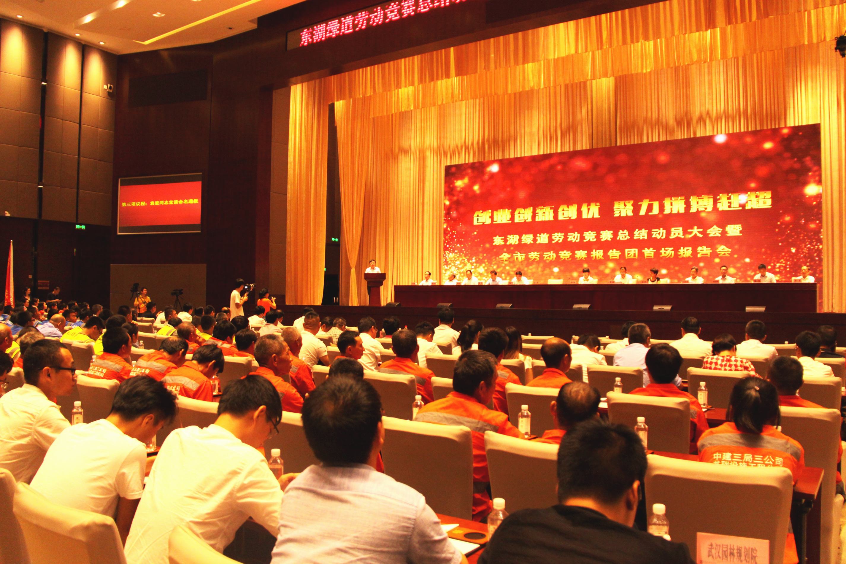 ??? 8月9日下午,東湖綠道勞動(dòng)競(jìng)賽總結(jié)動(dòng)員大會(huì)暨全市勞動(dòng)競(jìng)賽報(bào)告團(tuán)首場(chǎng)報(bào)告會(huì)在武漢市委會(huì)議中心隆重舉行,會(huì)議對(duì)環(huán)東湖綠道一期工程中表現(xiàn)突出的單位和個(gè)人進(jìn)行了表彰,公司以高質(zhì)量的設(shè)計(jì)產(chǎn)品和突出的工作成績(jī),榮獲武漢市總工會(huì)頒發(fā)的“工人先鋒號(hào)”榮譽(yù)稱號(hào)。公司紀(jì)委書(shū)記、工會(huì)主席趙世杰同志參加了大會(huì)并上臺(tái)領(lǐng)獎(jiǎng)。