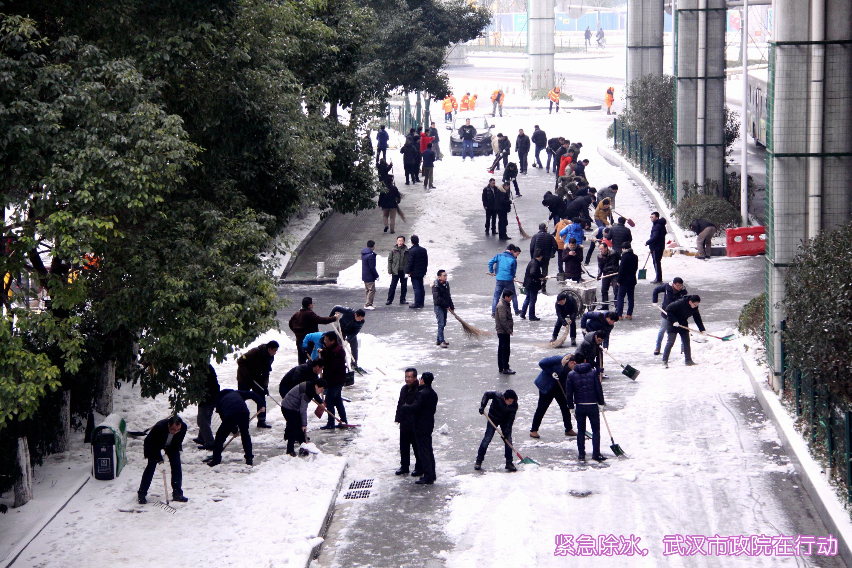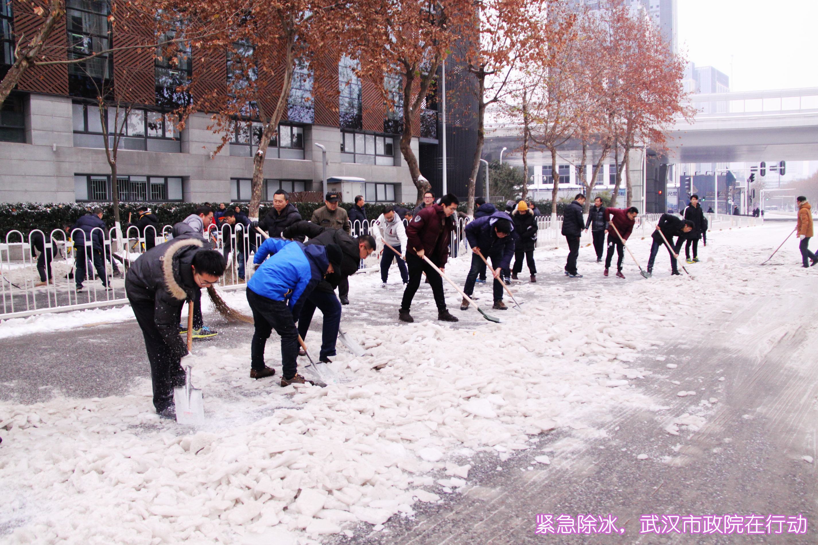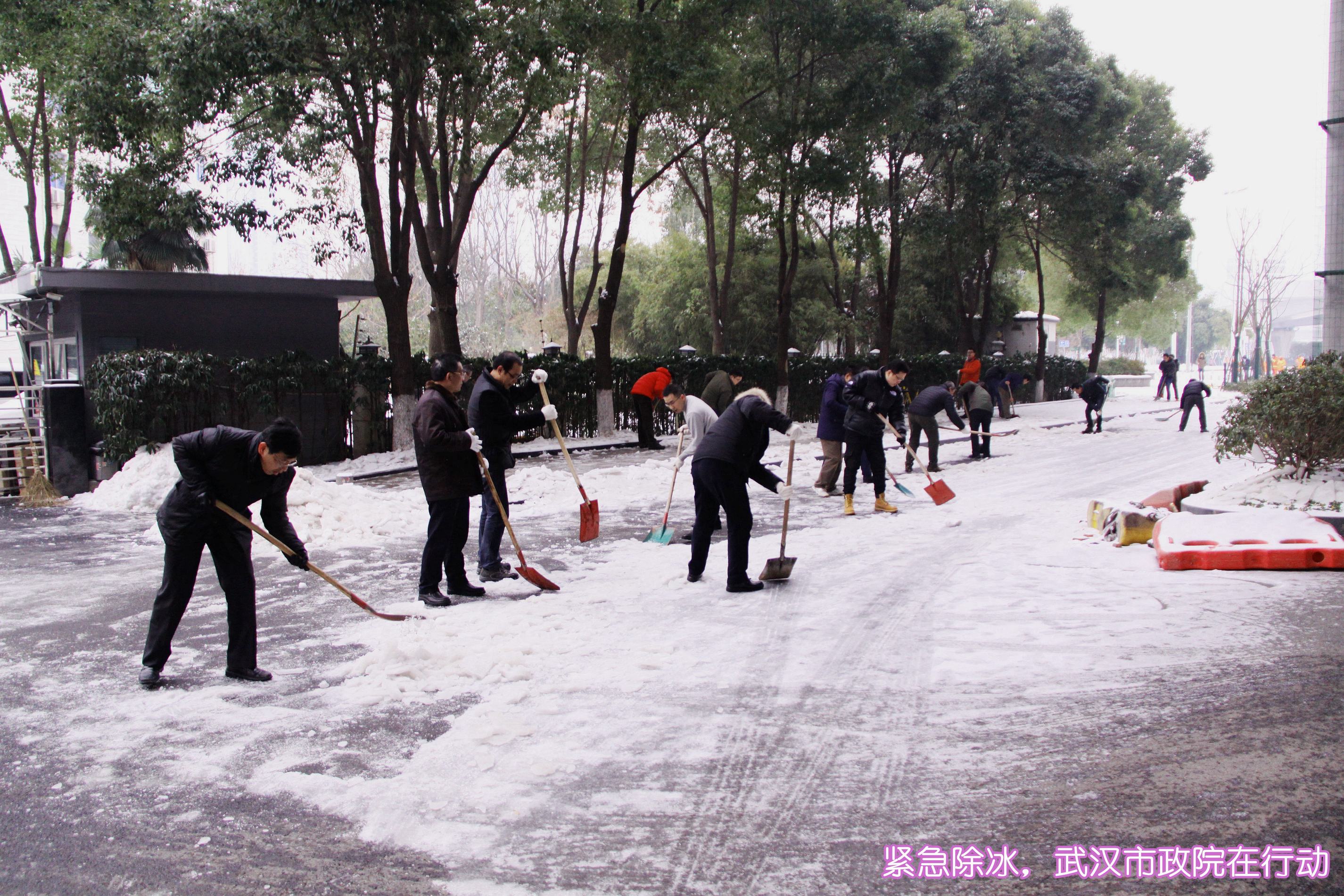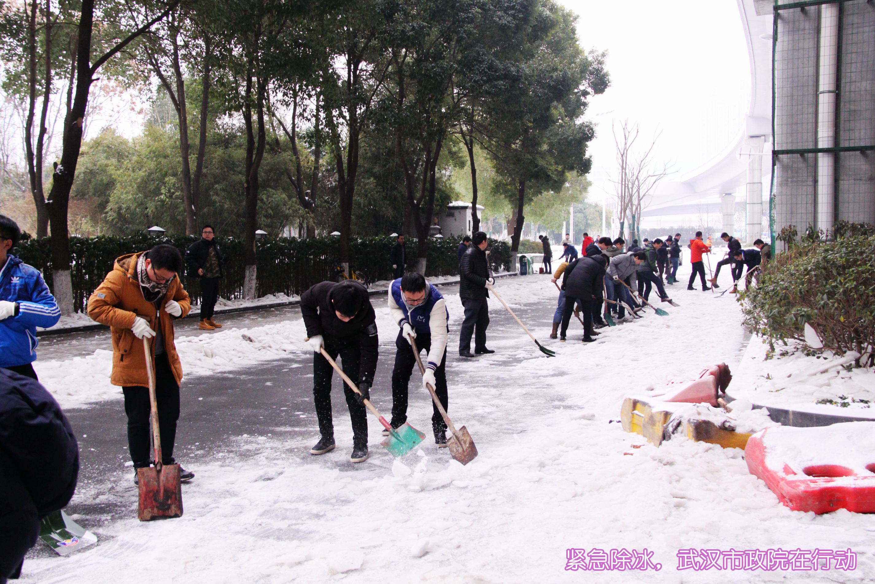 ??? 1月28日,武漢市政院的全體員工響應(yīng)市政府緊急通知的要求,放棄了周末休息時(shí)間,一大早便紛紛趕到公司,投入到抗擊冰雪保暢通的行動(dòng)中。由于連日來(lái)江城氣溫較低,雪落到路面上已經(jīng)形成了厚厚的冰層,為員工們鏟除冰雪帶來(lái)了極大的難度。在公司領(lǐng)導(dǎo)的帶領(lǐng)下,大家有的拿起鐵鍬鏟除冰層,有的拿著鋤鎬,敲碎路面上的堅(jiān)冰,有的則拿起掃帚,掃凈路面的冰雪殘?jiān)?。所謂人多力量大,不多時(shí),公司周邊道路及人行道上的冰雪便被鏟除干凈。
