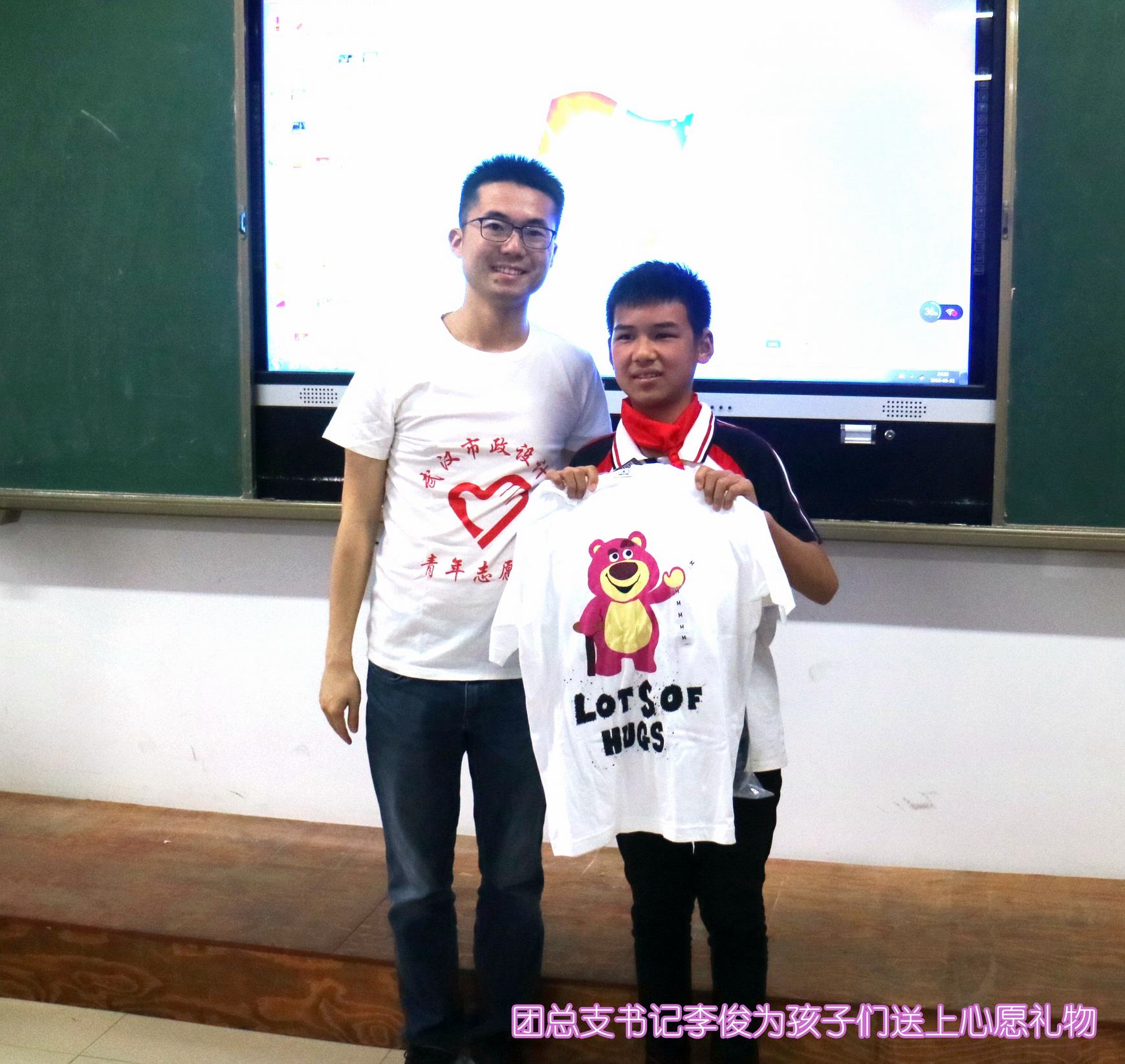 ??? 在教室門口的心愿墻上,貼滿了各色的小紙片,那是孩子們想要得到的節(jié)日禮物。寫下“微心愿”的孩子們?cè)诶蠋煹囊龑?dǎo)下依次走到講臺(tái)前,志愿者們依次為他們送上精心準(zhǔn)備的禮物,幫助他們達(dá)成心愿??粗⒆觽兡樕涎笠绲男θ?,志愿者的心里也被暖意填得滿滿的。