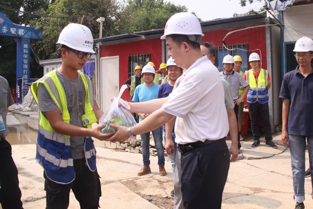 ??? 蔡輝一行先后來(lái)到軌道交通5號(hào)線科普公園站、筷子湖泵站及出江管道工程、寶豐路硚口路快速化道路改造工程等工地現(xiàn)場(chǎng),為堅(jiān)守在現(xiàn)場(chǎng)的員工們送上消暑慰問(wèn)品。公司領(lǐng)導(dǎo)聽取了現(xiàn)場(chǎng)負(fù)責(zé)人的工作情況匯報(bào),詳細(xì)詢問(wèn)了員工們的工作和生活情況,并叮囑他們注意高溫天氣下的工作安全。同時(shí)要求相關(guān)部門負(fù)責(zé)人合理安排工作時(shí)間,做好人員調(diào)配,制定防暑降溫工作預(yù)案,保證一線員工的身體健康。
