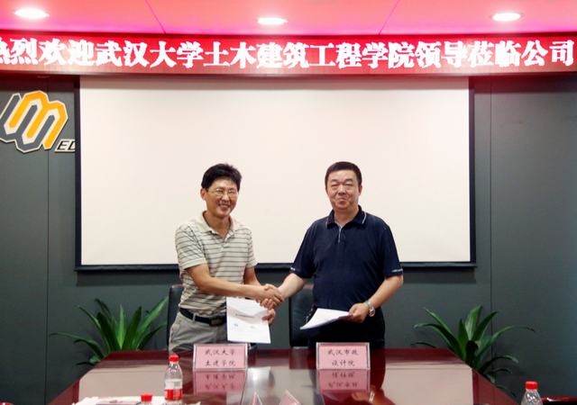 ??? 蔡輝對雷世富一行表示歡迎,并希望雙方在行業(yè)工程項目展示、世界及行業(yè)前沿探索、學(xué)生定向培養(yǎng)等方面能有全方位的合作。周俊介紹了公司的基本情況以及武漢大學(xué)土木建筑工程學(xué)院畢業(yè)生在公司的工作和成長情況,并對武漢大學(xué)土木建筑工程學(xué)院為公司輸送優(yōu)秀人才表示感謝。